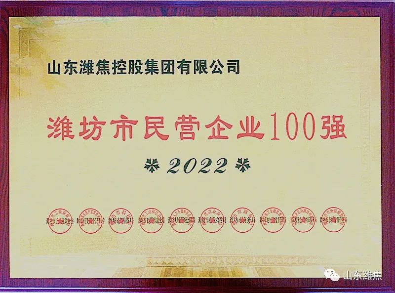 2022濰坊民營(yíng)企業(yè)100強(qiáng)發(fā)布,濰焦集團(tuán)榮登榜單!