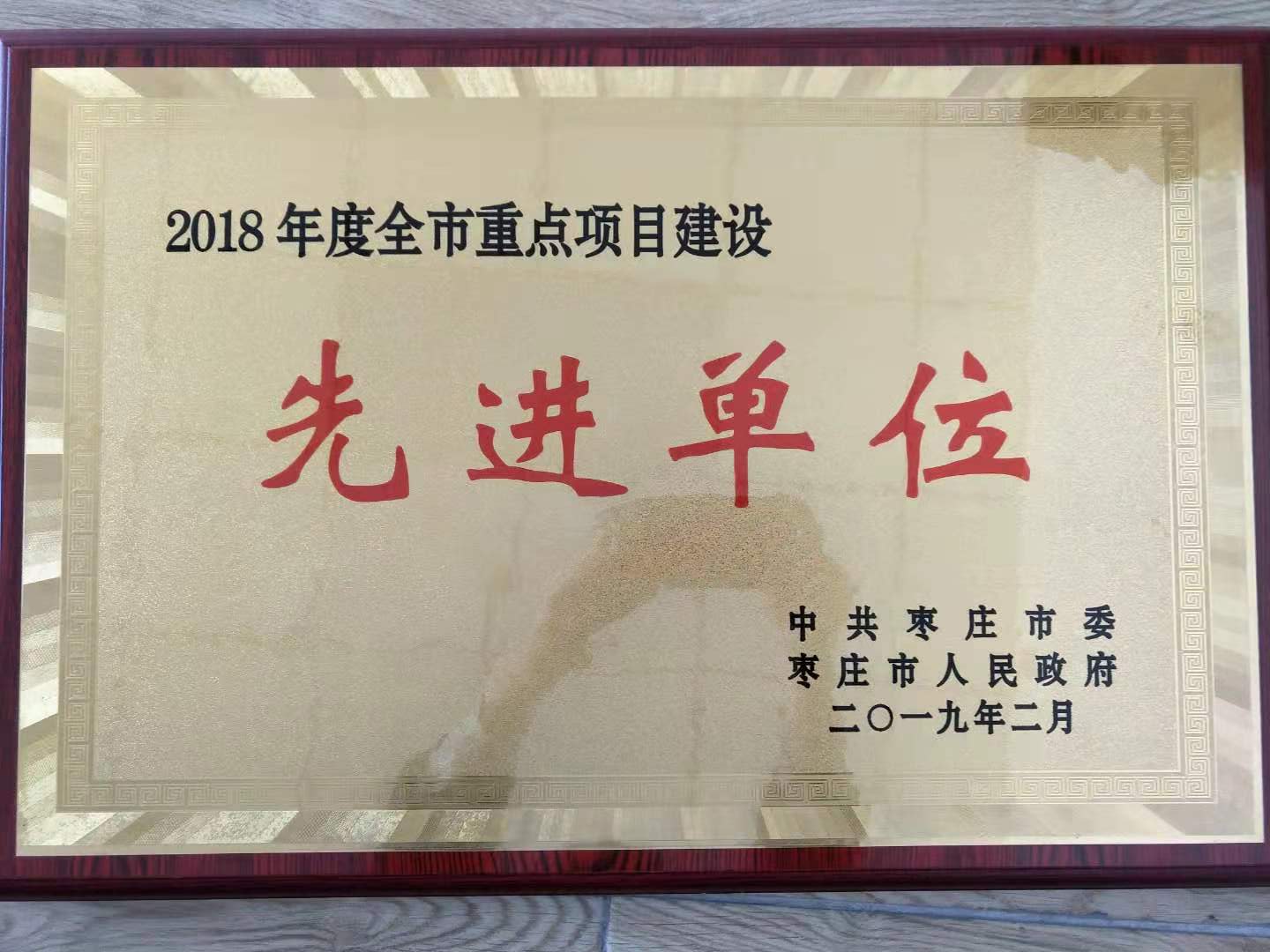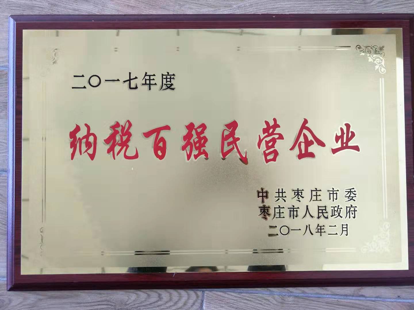 公司2017年度棗莊市”十大節(jié)水型單位“稱號(hào)牌匾
